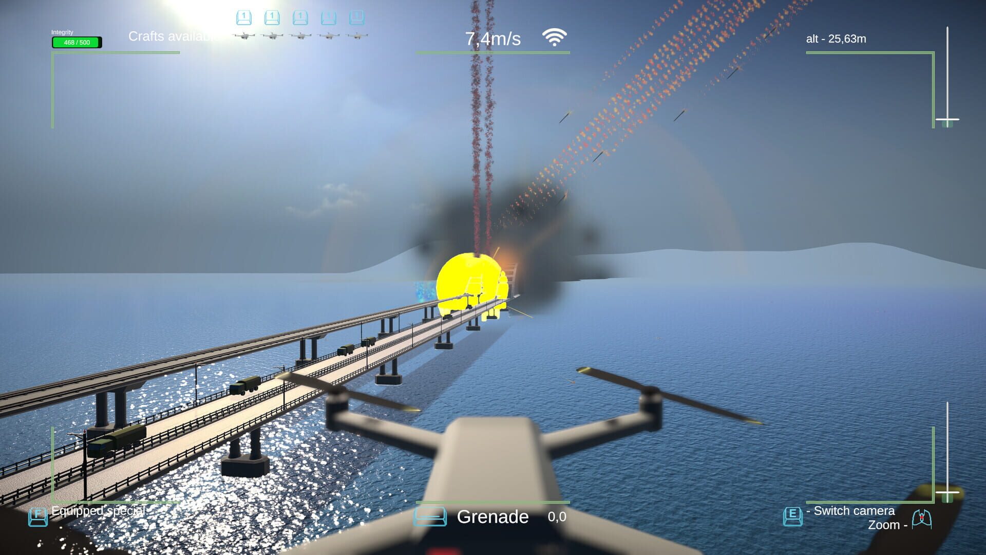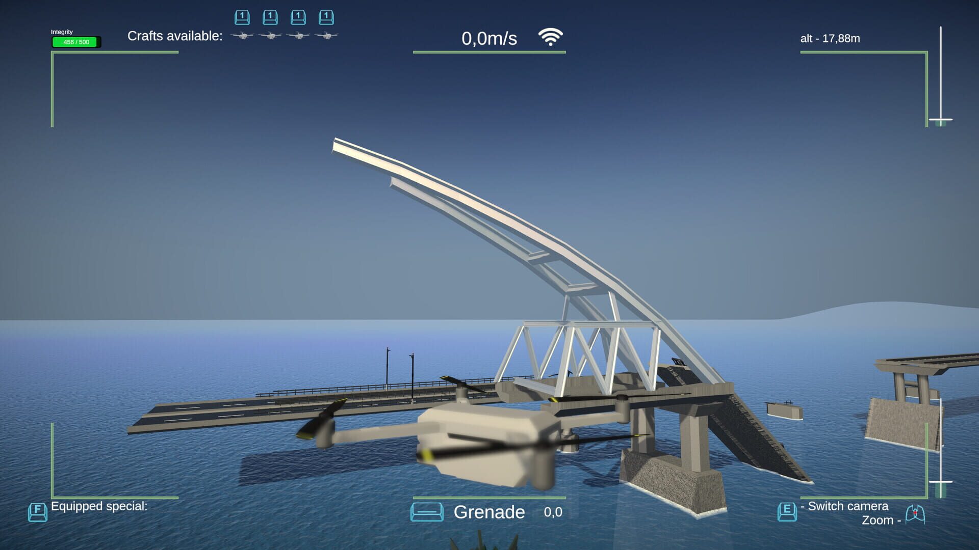 Greetings, pilot. Get ready to deploy your drone for the mission at hand! Your objective is to prevent the enemy from using a vital bridge. You have the freedom to try out various tactics and abilities in a fully destructible environment. Your role is crucial!